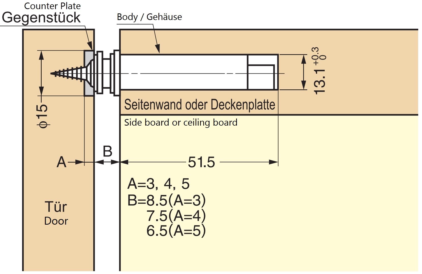 - Pentru a monta zăvorul magnetic MC-U60, trebuie găurită o gaură cu un diametru de ⌀14 mm (35/64″) în peretele caroseriei