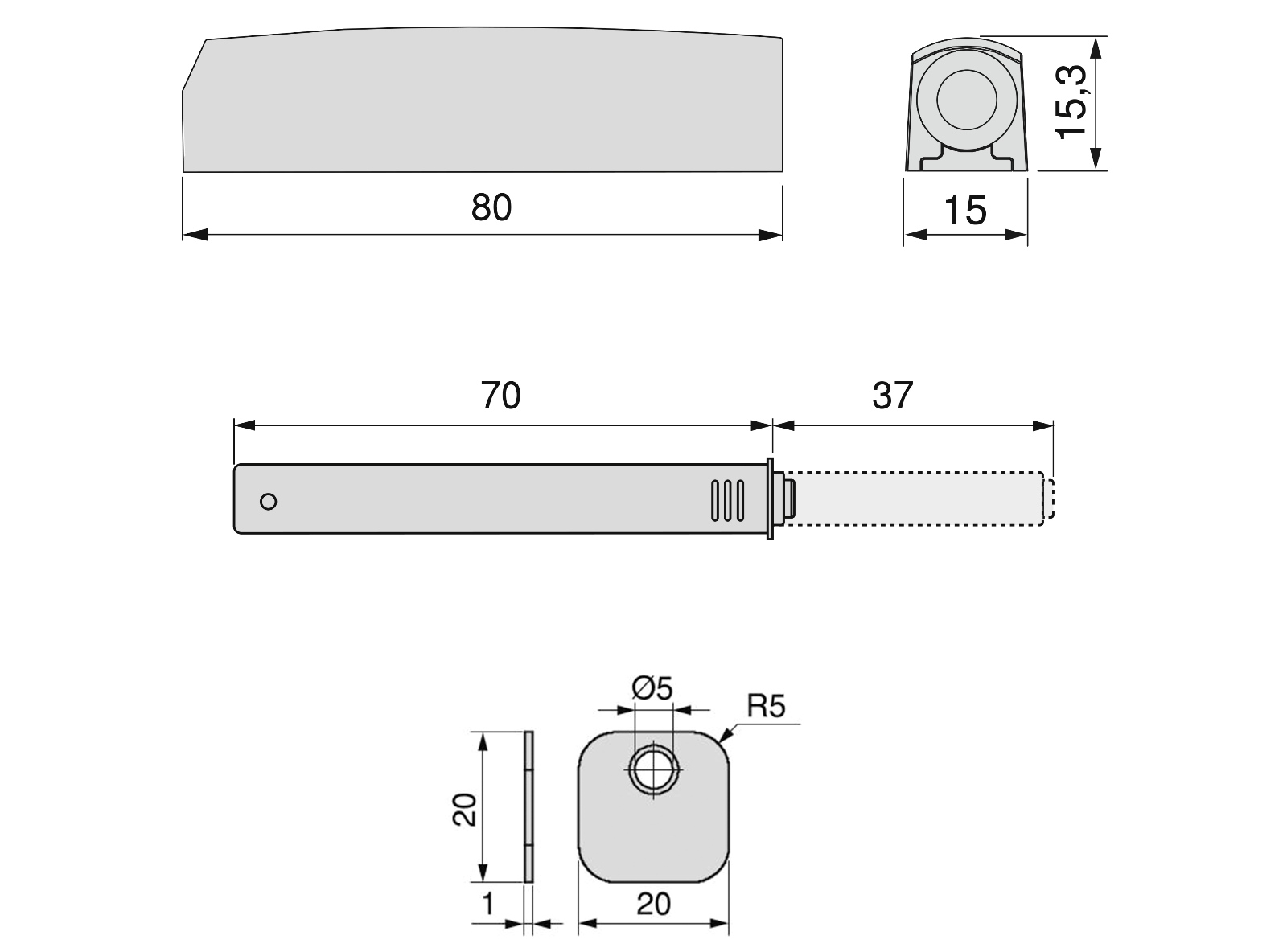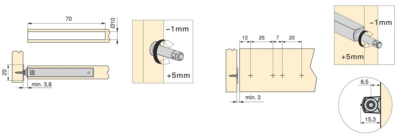 Deschizătorul de uși Push-To-Open 1900321 permite deschiderea și închiderea convenabilă a ușilor de mobilier fără mânere prin simpla apăsare a unui buton.